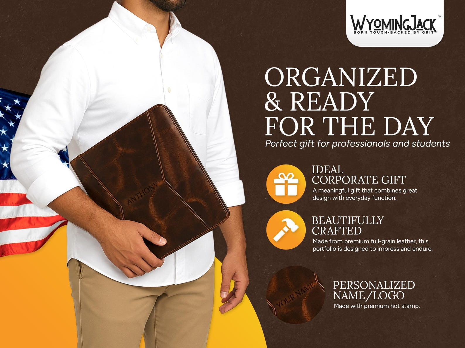 Elevate your professional look with the Wyoming Jack Full-Grain Leather Portfolio. Handcrafted with care in the USA, this premium leather portfolio combines rugged craftsmanship with refined style. Designed for professionals who value quality, durability, and timeless appeal, it’s the perfect companion for meetings, conferences, and everyday business use. Built from genuine full-grain leather, it develops a rich patina over time, reflecting your journey and commitment to excellence.